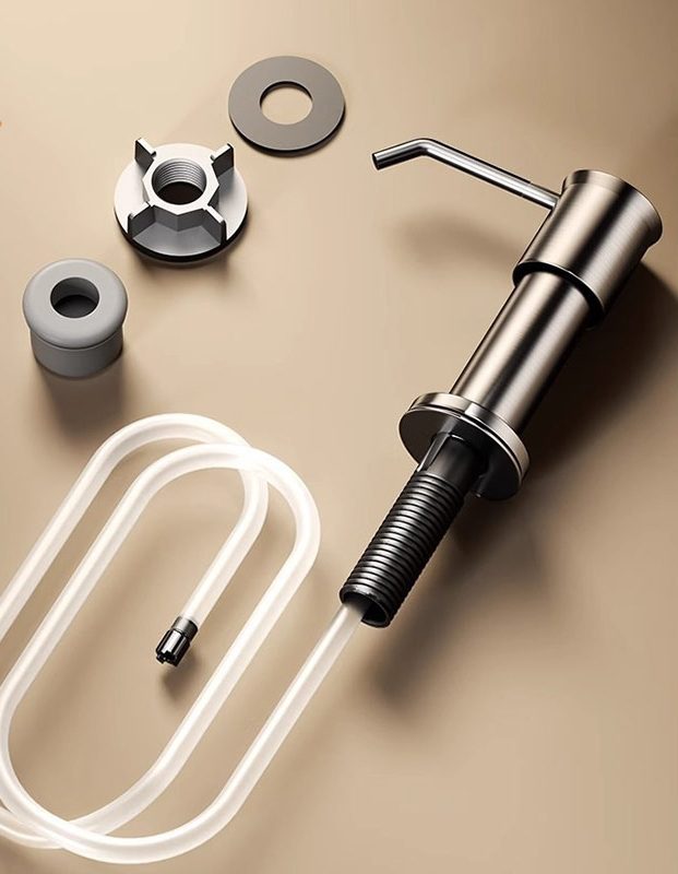 جا مایع توکار ABS با ابعادی بزرگتر از جامایع های موجود در بازار بدون مخزن عرضه می شود. این جامایع دارای پمپ قوی بوده تا بتواند از فاصله دورتری از مخزن، مایع ظرفشویی یا کرم بهداشتی را به لوله خروجی برساند.