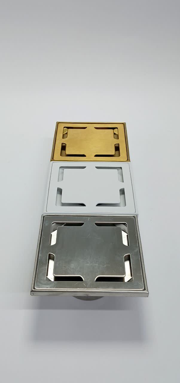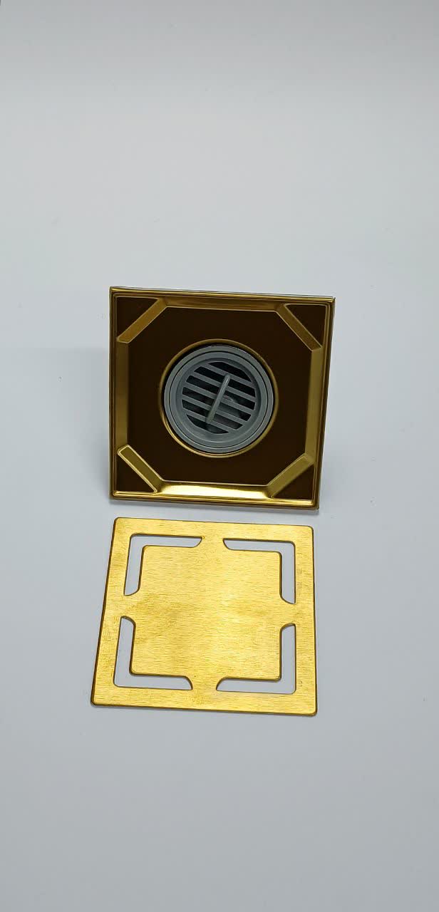 کفشور10*10-کفشوی درب استیل مشبک طلایی-استیل-دودی خروجی مرکز خروجی5cm بدنه ABS مناسب حمام-سرویس توالت-آشپزخانه و…